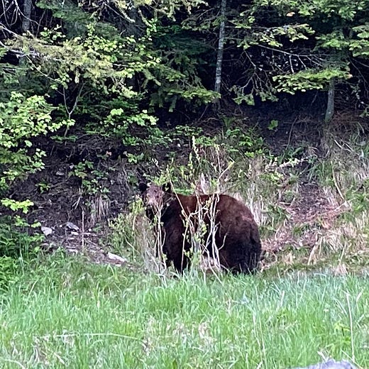 Beautiful views and a bear - pictures taken from a recent run to get some Japanese sushi takeout.