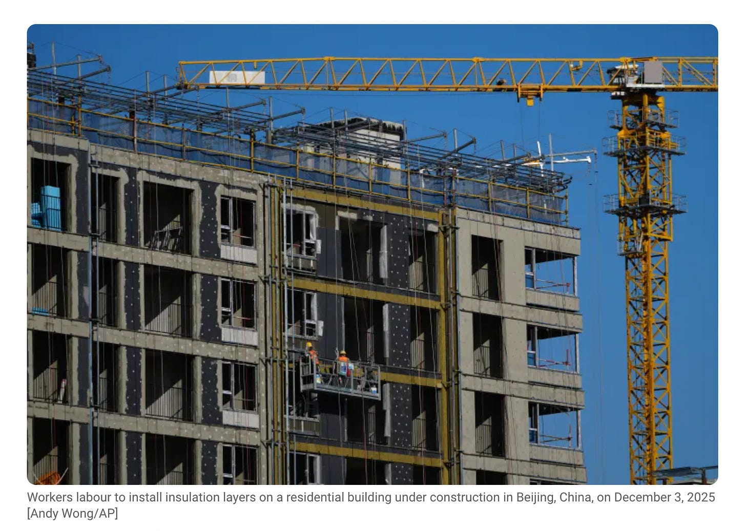 Finally, an enormous obstacle to transitioning to a more demand-driven economy is the still ailing property sector, with prices continuing to fall in 2025. When the single largest asset that you own as a family keeps depreciating, you don’t feel confident nor ready to open your wallet and start spending, I told to Al Jazeera earlier this week.