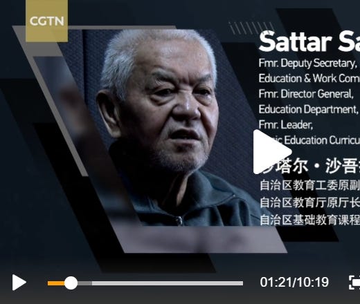 A new “documentary” from China’s state broadcaster CGTN, known for its use of forced confessions in its reports, claims that versions of Xinjiang’s Uyghur language textbooks from 2003 and 2009 contained material that incited "blood, violence & extremism" and describes how those responsible for their publication were sentenced to lifetime in prison and even death sentences.
